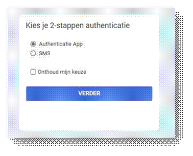 Klik vervolgens op verder. Het scherm Kies je 2-stappen authenticatie opent nu.
