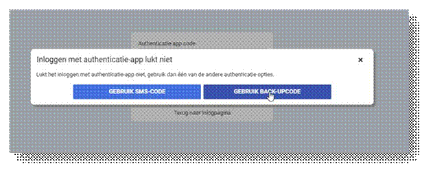 Het scherm Back-upcode opent nu, vul hier de eigen back-upcode in en klik op inloggen.