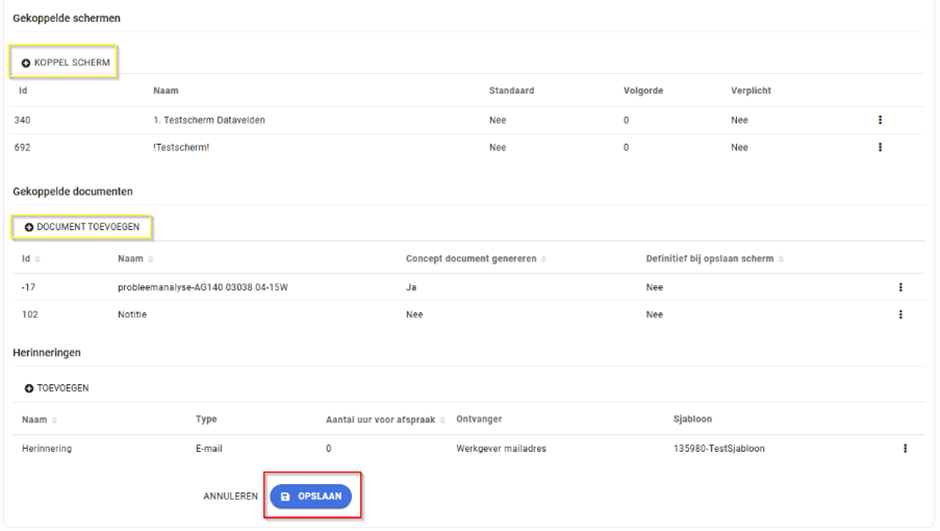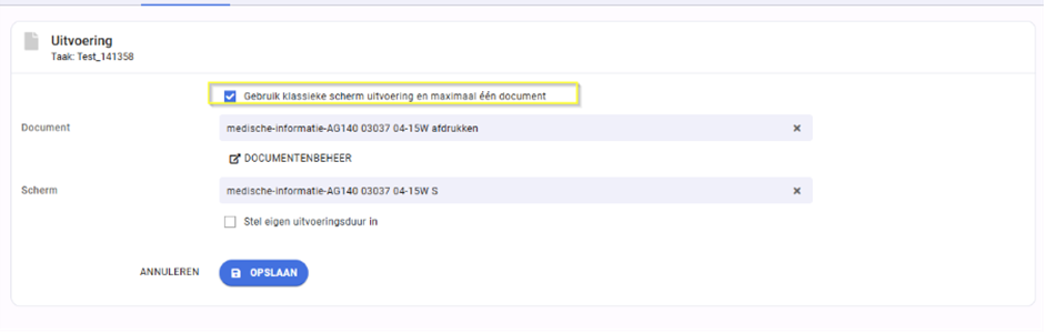 5. Selecteer het juiste document en scherm en klik je op ‘Opslaan’.