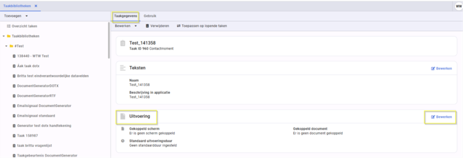 3. Ga naar het tabblad ‘Taakgegevens’ en klik op ‘Bewerken’ in het blok ‘Uitvoering’.